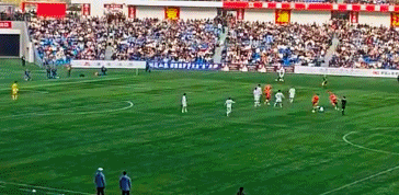 多位情绪激动的海港队球员上前一把推倒南通队球员,随后两队多人加入冲突,甚至连双方的守门员都奔袭大半场加入战局。
