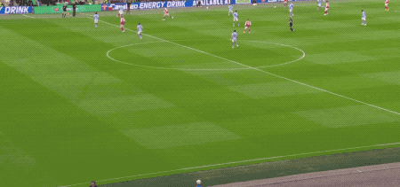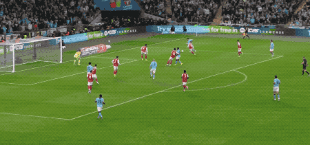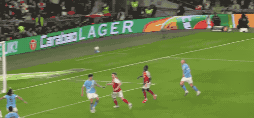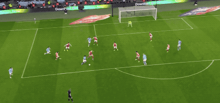 第87分钟,热苏斯头球吊射,皮球越过特拉福德头顶,砸在横梁上。