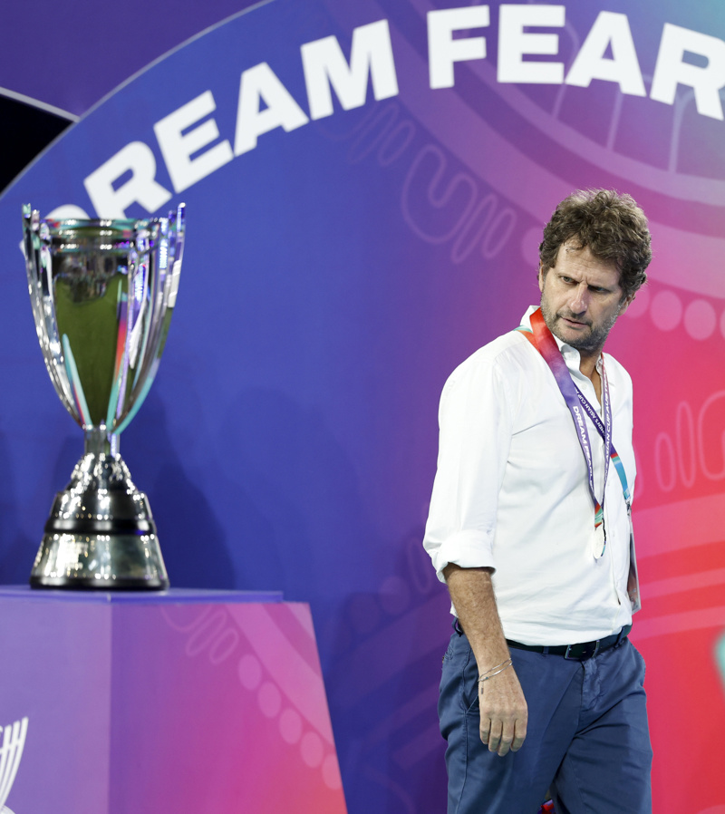 3月21日,澳大利亚队主教练蒙特穆罗在颁奖仪式上看向冠军奖杯。 当地时间3月21日,在澳大利亚悉尼举行的2026年女足亚洲杯决赛中,日本队1比0战胜澳大利亚队,夺得冠军。 新华社记者 马平 摄