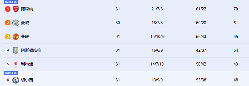目前阿森纳领先曼城9分,虽然比分差距不小,但曼城目前少赛一场。