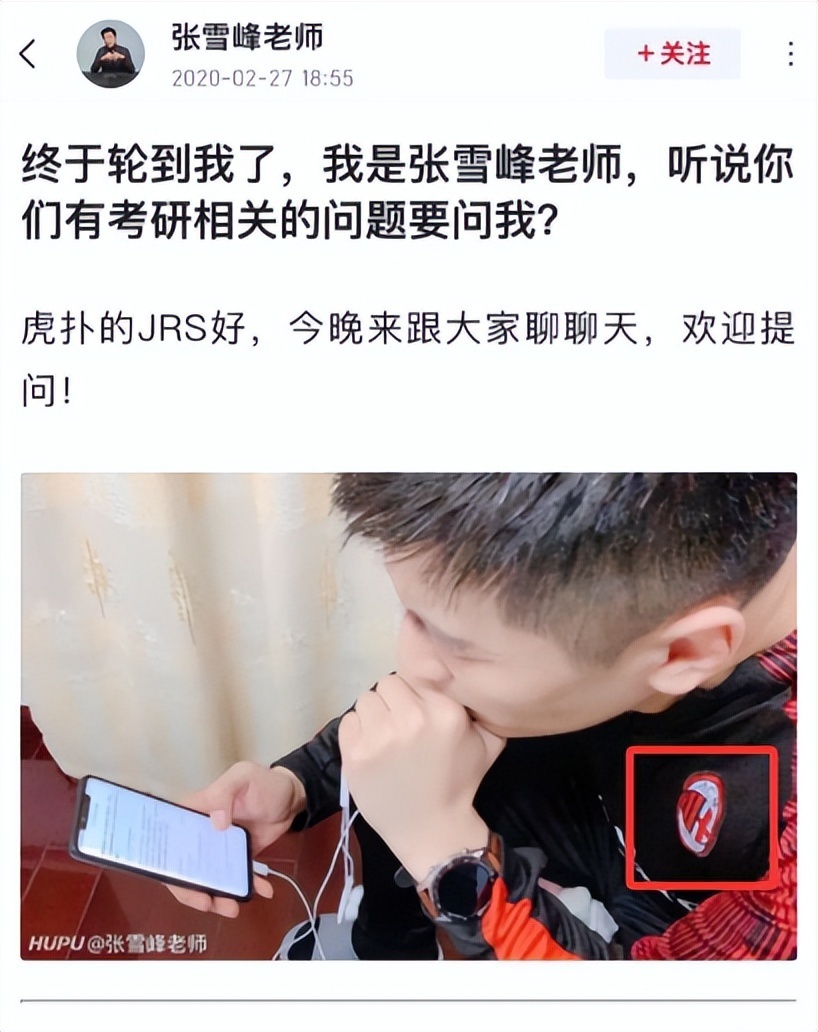 张雪峰是妥妥的红黑军团死忠粉。刚在网上一炮而红的时候,有铁粉摸清了他的喜好,专门送了他一条AC米兰的皮带。张老师拿到手后高兴得像个两百斤的孩子,逢人就得瑟,还开玩笑说这是“当网红为数不多的好处之一”。