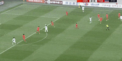 第23分钟,泰国队在右路连续配合,中国队的球员无法抢下球。随后,泰国队员杰哈纳菲-马玛在大禁区弧顶处接球。他连停带过,随后在禁区里直接轰出一脚无解的世界波。
