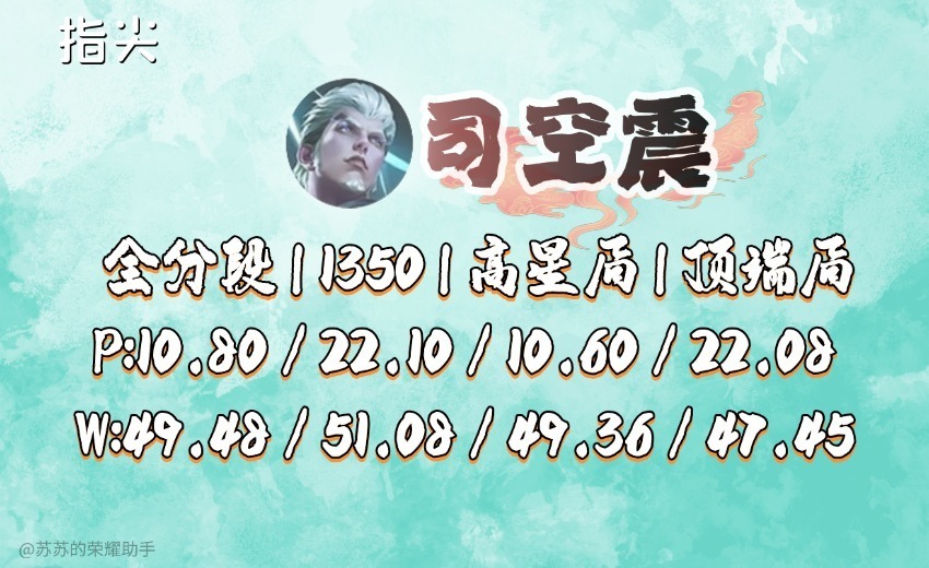 司空震最近的调整都是削弱,但似乎都难以撼动他的地位,12日的调整,削弱了1技能的位移速度,虽然我不玩司空震,但训练营试了下,虽然体感会觉得好像慢了点,但总体的移速还是很快的,超过了大部分位移技能。
