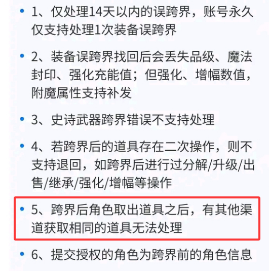有很多玩家肯定是准备9月1号跨界石领取到之后就直接跨界史诗了,就算是刚跨界爆出了同样的史诗装备,也可以通过申诉找回来的。但9月1号大家千万别跨界,不然错失自选超凡。要知道在跨界误操作找回的规则中有一条,跨界后角色取出了装备并且又获得了同样的装备是不能进行误操作找回的。所以说大家应该在多刷几天的算,实在是爆不出装备再跨界,这样才能避免刚跨界就出货的尴尬。