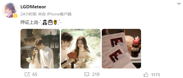 前LPL职业选手晒照,与女友领证结婚,俊男靓女颜值太高了