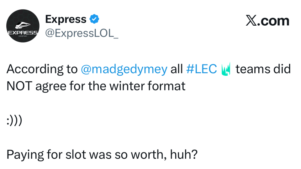 今年世界赛还没开打,拳头就已经开始为明年谋划了,之前官宣LTA赛区取消,回归LCS和CBLOL,北美依旧是3个世界赛名额,巴西赛区也给了一个,而在近日,拳头又对LEC下手了,据外网爆料,拳头计划把LEC赛区名额,增加到12个,冬季赛也要大幅度改革,冠军队伍直通先锋赛。