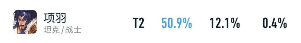 以上这三位对抗路,都是能在小规模的团战中,比如3v3或者2v2,打出不错效果的英雄,即便拖到后期也能给到射手压力,不像坦克那样笨重,属于S41新赛季的对抗路首选。不过,今天我主要想聊的英雄并不是他们,而是一位最近胜率也出现飙升的“边路黑马”,他就是项羽。