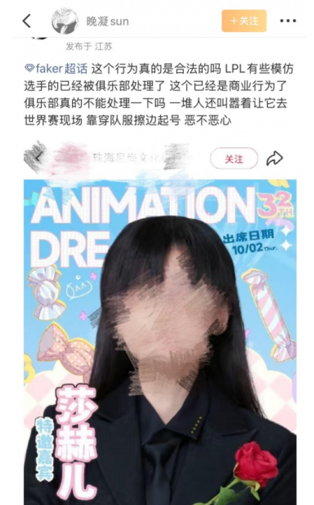 尤其是在Faker的粉丝群体中,许多人认为这种行为是赤裸裸的“蹭热度”和“哗众取宠”,在他们看来,莎赫儿借助“长得像Faker”这一标签本就颇具争议,如今又故意选择带有挑衅意味的女仆装造型,不仅是在消解Faker作为职业选手的专业形象,更可能对偶像本人的声誉造成不良影响,于是,大量粉丝涌入Faker的超话表达愤怒,甚至呼吁LPL官方对莎赫儿进行“清算”,要求对其账号采取封禁措施。