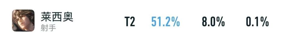 相比之下,同样带有百分比伤害的莱西奥,则有51.2%胜率+8%出场率,真的亮眼很多,说明在遇到多肉阵容时,选择莱西奥明显会稳定不少。