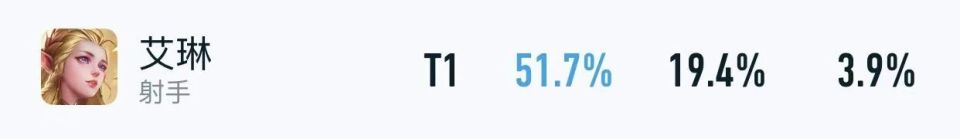 也正因如此,艾琳的巅峰赛出场率才能高达19.4%,这还是在51.7%胜率的前提下,跟公孙离并称“女魔射”。