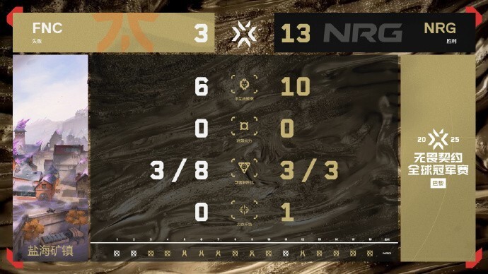 北京时间10月5日,2025年无畏契约巴黎全球冠军赛总决赛,NRG以总比分3-2击败FNC,拒绝让二追三夺得冠军!