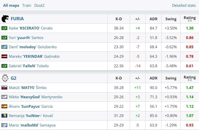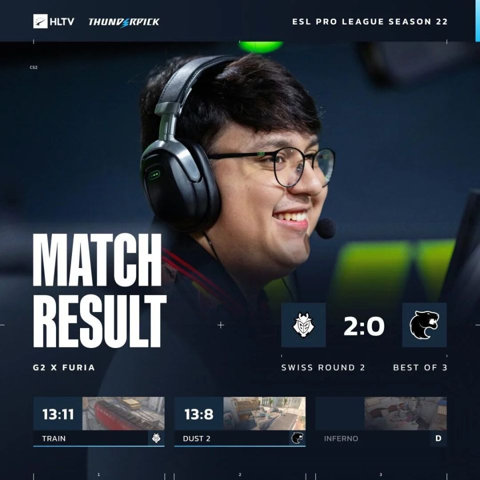 图一局势十分胶着,双方在Train上你来我往分毫不让,但G2还是以两分险胜先下一城。来到图二Dust2,G2更加游刃有余半场取得10-2领先,虽然后续被黑豹连续追分,但G2还是找到机会终结比赛晋级2-0组。