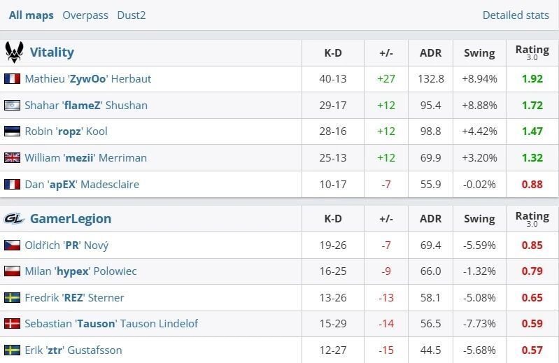 本场比赛Vitality一扫首轮对阵GM时的颓势,大黄蜂火力全开连续两图暴打对手,强势发挥轻取对手晋级1-1组,GL两战全败濒临出局。