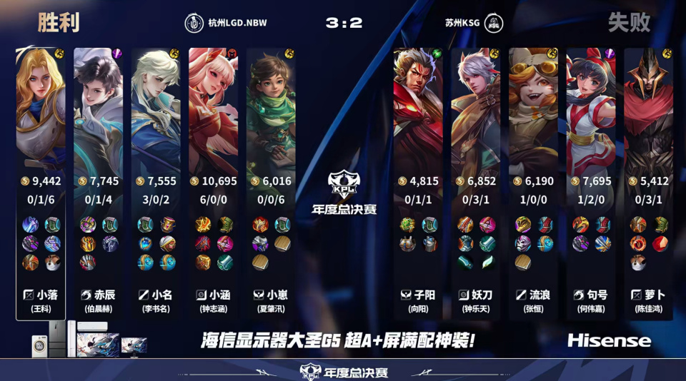 双方2比2战平,进入决胜局。3分钟上路双方爆发碰撞,海诺二连击破完成收割。下路公孙离越塔击杀百里守约,LGD顺利控下首条小暴君。4分40秒下路,公孙离再次击杀百里守约,LGD推掉下外塔并反掉蓝buff,7分钟推掉下二塔。10分半,LGD控下双龙,破掉三高。最终LGD零换四后推掉水晶,拿下胜利。