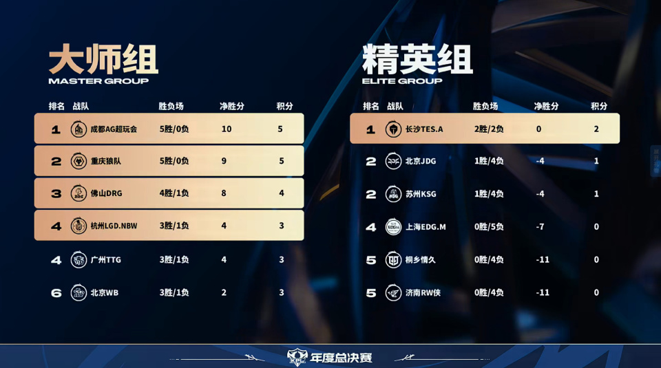 LGD在上一场比赛2-0先拿赛点的情况下,队伍状态突然滑坡,两套阵容全都哑火,被TES连追三局,成为了第三支被精英组击败的大师组队伍。而这场失利也直接让LGD掉到了大师组垫底的位置,如果再输一个大场的话,基本就可以备战突围赛了。