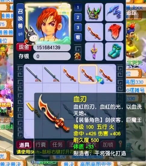 第二把100级的刀,伤害375还不错,体耐双加42,还带着笑里藏刀,化生寺跟方寸山都可以用,但是宝哥万物理系,没啥用处!