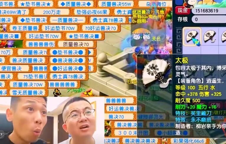 这一把就是昨天鉴定出的最值钱的武器,也是宝哥直播梦幻以来最值钱的武器了,100级的刀,伤害+406,命中+396,体制+23,耐力+18,特技是流云诀,刚开始小王说十万左右,后面打听了下无与伦比服务器刚成交过一把类似的锤子,卖了23万,很多人肯定质疑怎么可能这么贵,因为他是畅玩服,他鉴定一件成本都是2-3千,所以跟时间服的物价没法相提并论!