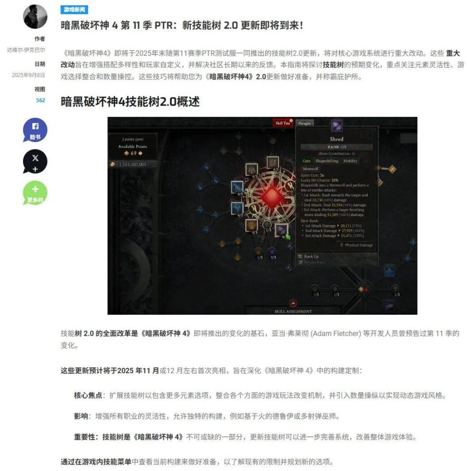 《暗黑4》S11 PTR将迎来巨变!或有全新技能树系统