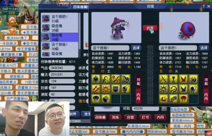 第一组是两只9技能的吸血鬼进行炼妖,其中炼妖之前大斌子还在说资质不好,不要出好的,没啥用!