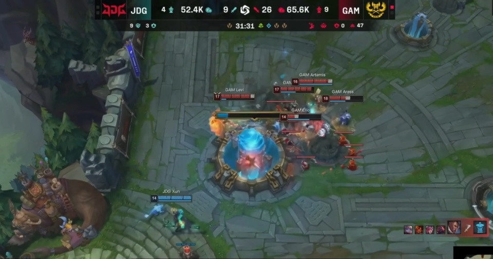 在这局比赛的后期,JDG也不是没有打出反击团战,但基本就是LPL赛区经常出现的回合制游戏,你赢一波我赢一波,最后关键团战GAM龙魂拿下一波结束。
