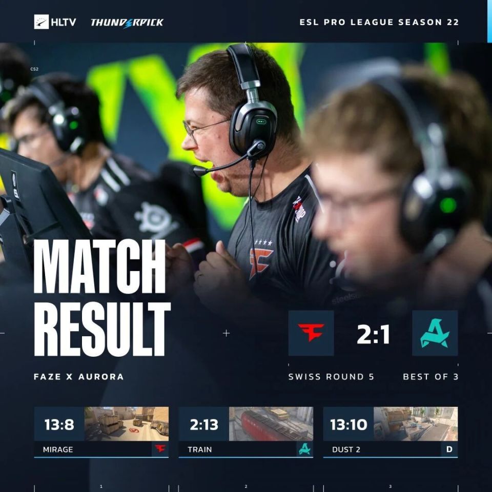 2-2组:FaZe 2-1淘汰Aurora,地狱归来以3胜2负晋级淘汰赛