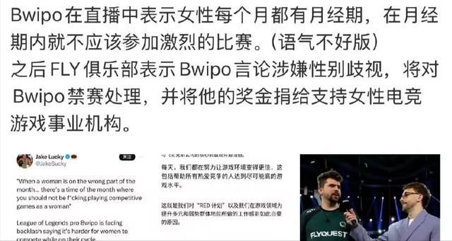 随着大量观众的吃瓜,拳头也是出面解释为啥延期MV发布,起因是FLY核心选手Bwipo在公开采访当中坦言,“女性因为有月经期的缘故,不适合打比赛”,正因为这个发言让很多女性玩家不爽,所以拳头官方宣布取消Bwipo在世界赛MV的镜头,而Bwipo所在战队也是取消Bwipo的全部奖金,并且捐献给支持女性的电竞机构。