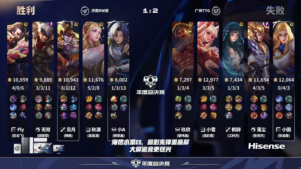 最后一局RW侠也有机会,但无双的镜关键时刻操作了一波,超远距离换位进人堆一打五,把自己操作没了。这波如果操作成功确实很帅,但没成功就掉了大节奏,公孙离和苏烈也都阵亡。Fly的关羽这局绕后一直在被火舞盯着,鹤辞的意识非常到位,最终TTG还是有惊无险拿下比赛,取得大场四连胜。
