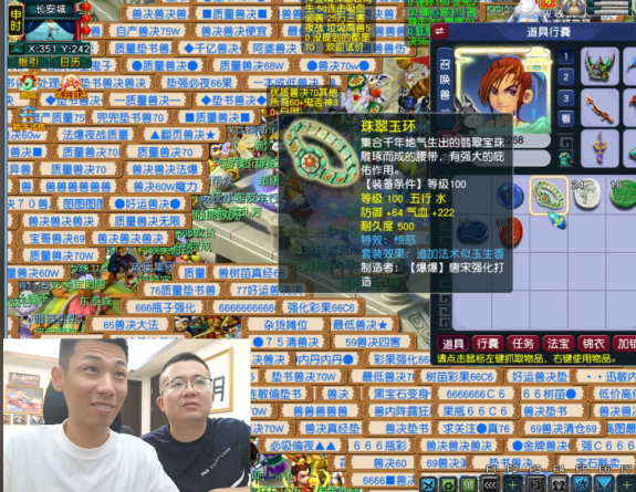 其中有两个图没截到,两个分别是五雷咒跟龙吟,最后一个以靛沧海结束!因为现在区里的附魔太少了,只能结束了,后面等货多了再继续附魔。后面又丢给宝哥两个分别是紧箍咒跟阎罗令!