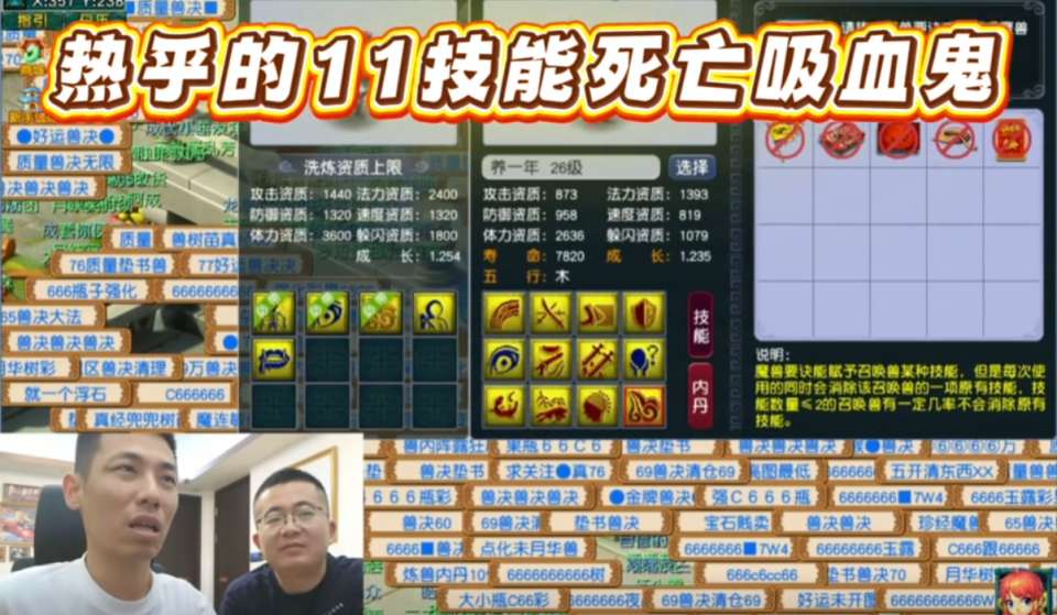 看宝哥的这个造型就可以得知这是在放手一搏,战歌都放起来了,那就代表这组的胚子的比较极品了,13技能的吸血鬼跟8技能的带着死亡召唤的吸血鬼进行炼妖。