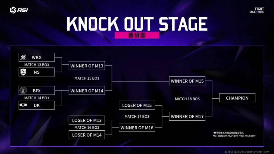 英雄联盟亚洲邀请赛,小组赛已经结束了,上一个比赛日,BFX横扫MVKE,拿下三连胜,成为小组赛唯一的全胜队伍,同时DK也在交手GAM时,以2:0的比分完成速通,拿到第三个淘汰赛名额,最后NS大战NIP,两队只打了两局,NS就赢下比赛,成功晋级淘汰赛,至此四强全部出炉。