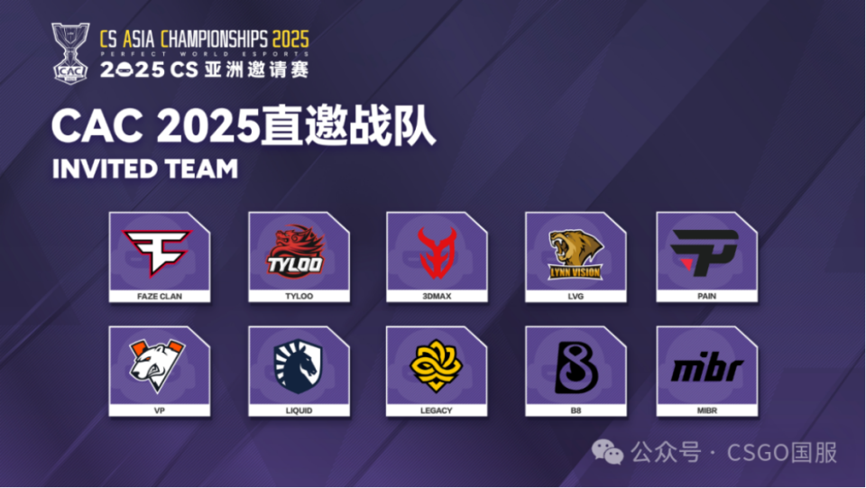 10支直邀战队已全部确认,包括FaZe Clan、TYLOO、3DMAX、Lynn Vision Gaming、paiN Gaming、Virtus.pro、Liquid、Legacy、B8和MIBR,直邀名单依据2025年7月VRS全球积分总榜严格选定,代表当今世界最高水平。其余6个名额将通过欧洲、南美、北美和亚洲四大赛区预选赛决出,众多新锐力量将向正赛资格发起冲击。