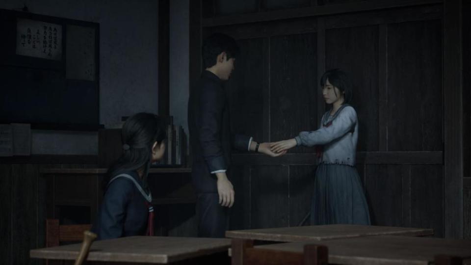 雏子和凛子、咲子之间被网友们戏称为“塑料“的友情,则体现出剧本的暧昧与复杂。在一周目中,散落在场景中的纸条会让玩家误以为“咲子是病娇”且“凛子、雏子和修三角恋”——这些误解直到至少三周目才会被化解。实质上,友情是雏子生命中重要的一个课题,校园生活也是她内心深处的避风港,是重度焦虑状态下被动防御机制的触发。从设定来看,雏子在现实中已是约二十岁的成年女性,但在“表世界”小镇中,她始终以身穿校服的学生形象出现。她的精神幻觉以“重返校园”的形式,将对婚姻与母职的恐惧转化为对“成长”本身的抗拒。在这里,婚姻不仅是个人情感的选择,更是社会强加的“成人仪式”:女性被要求从“女孩”转变为“妻子”“母亲”,并在这一过程中丧失主体性。雏子对校园的执念并非出于怀旧,而是一种心理性退行(regression)——精神分析意义上,当个体面对无法承受的焦虑时,会退回到较为安全的心理阶段,以逃避现实冲突。对雏子而言,婚姻象征死亡,而校园则是“尚未被要求成为女人”的最后净土。