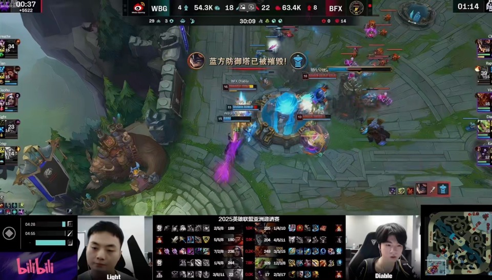 亚洲邀请赛WBG和BFX的BO3,双方大战2局之后,WBG以0-2的战绩不敌BFX,惨遭淘汰,无缘后面的比赛。2局WBG都是前期优势,但是中后期开始各种失误狂送,导致痛失好局。而LCK三支参赛战队全部晋级最后的比赛,包揽亚洲邀请赛的前三名。
