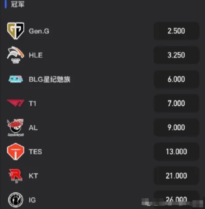 S15各大战队赔率公布,LPL全体不被看好,IG甚至达到了26倍
