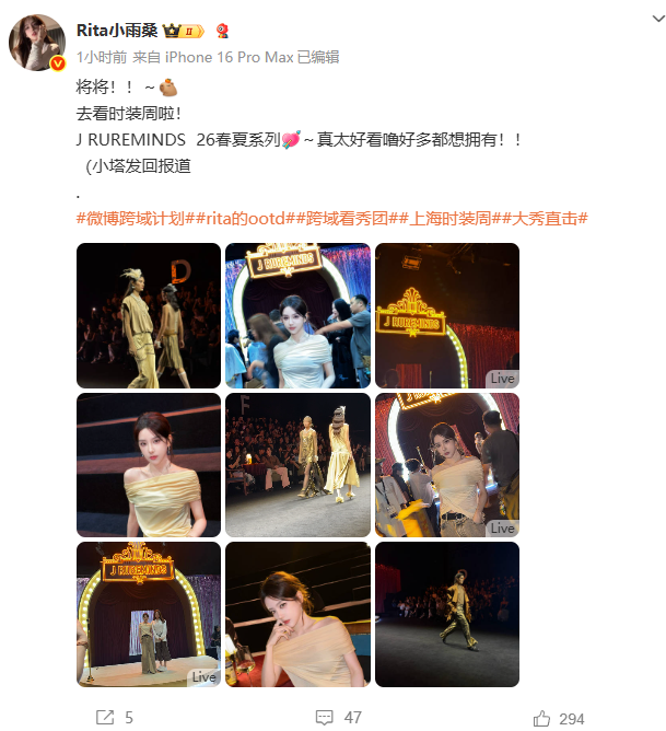 【LPL老婆】Rita看时装秀,一字肩裙太迷人了
