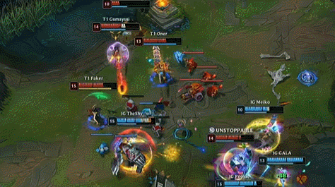 随后IG阵容优势开始发挥,顶住T1的连续绕后开团后顽强扳平比分。