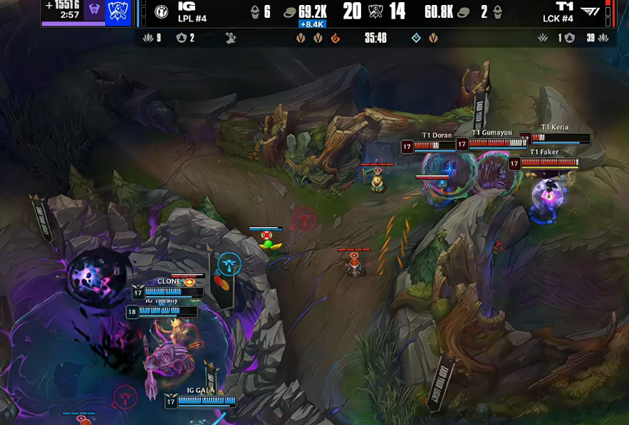theshy越塔单杀多兰!巨大优势越塔失败,Faker三抬翻盘iG