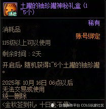 注意:①土罐,土罐神秘礼盒10月16日会被删除,开启后获得的土罐没有删除时间!
