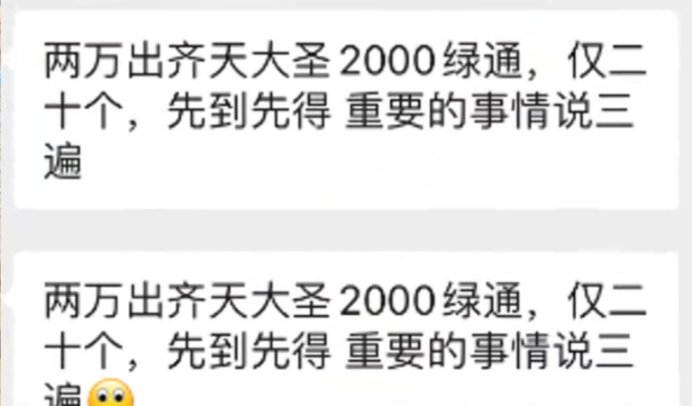 然后我一看群里的消息就知道了,工作室都疯狂了,怪不得我们这些正常玩家抢不到绿通,都让那些工作室用科技抢过去了,然后他们加价甩卖,基本上2000的绿通他们要价在6-8千,然后540的绿通基本上都在八百到一千,太坑了。大家千万别买他们的这种,还是自己抢比较好!