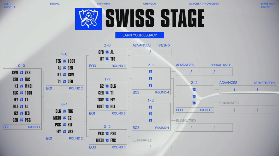 那么在今天瑞士轮第二轮所有比赛结束后,惊心动魄的抽签环节也是来了,如果说瑞士轮前两轮都是小打小闹的话,那么第三轮就非常关键了,需要注意的是,之前拳头就在瑞士轮新增了一条规则,就是在瑞士轮交手过的队伍将自动规避,从当前1-1组别的组成来看,100T和BLG,T1和FLY这几组将自动规避对局。