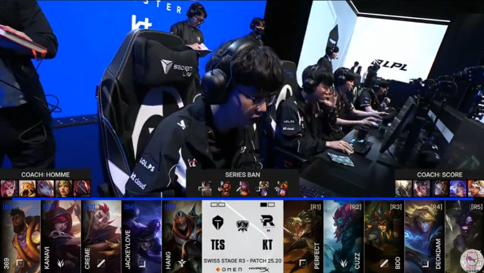 第一局BP完败,第二局拿瑞兹不Ban蛇女,教练组无能只是一方面,选手表现更离谱。Kanavi再次太子瘾上身,绑架队友,自己也不C,两局负作用,被对手老将Cuzz吊打。其他选手也逃不掉,面对韩国已经是最弱的双人组,辅助Hang又梦回当年送疯了,Jackeylove没有任何存在感。Creme和369也是被KT对位轻松碾压。