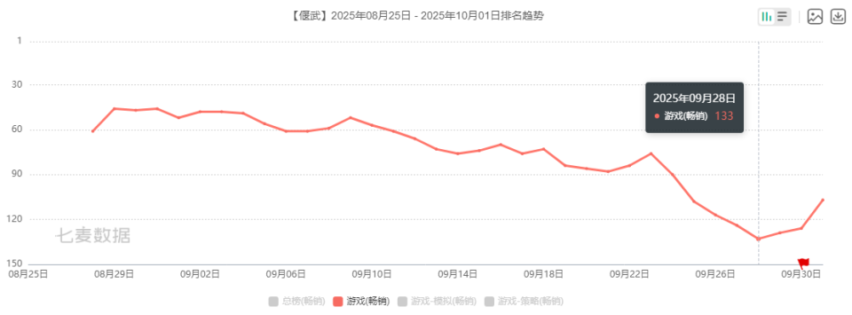 《伊瑟》的国际服于6月上线,短期表现不错,首月吸金在6000万以上。国服版9月25日上线后,整体表现可圈可点,据七麦数据显示,游戏在上线首日曾短暂登顶AppStore游戏免费榜,AppStore游戏畅销榜最高冲到了第26位,而后游戏双榜排名皆出现下滑,免费榜下滑到了300名开外,畅销榜目前滑落至第80位左右,有些显露疲态。