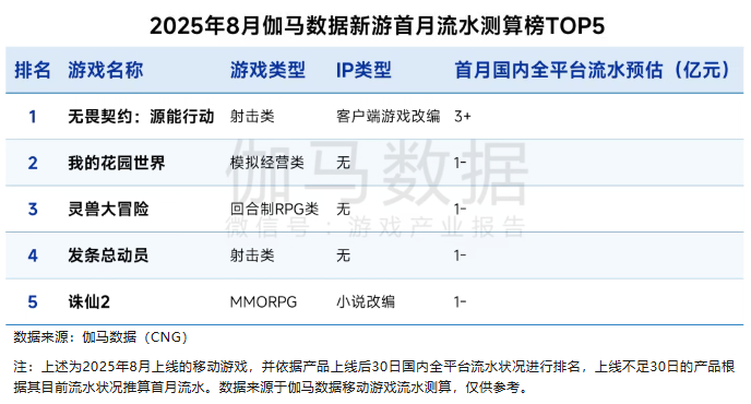 结果也确如他们所说,《无畏契约手游》展现出了非常夸张的吸金能力,近期伽马数据发布了《2025年8月中国游戏产业月度报告》,其中《无畏契约手游》以13天豪取超3亿元预估流水位居8月新游流水测算榜榜首。