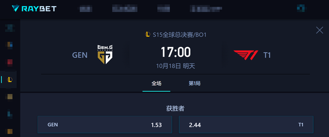 整体而言,阵容配置和交手战绩方面GEN都有着绝对的优势,虽然他们在世界赛似乎总是会没能发挥最佳水平,可还是没人会小觑他们。至于T1能相信的就是中路选手的ID,期待Faker在世界赛能够再次打出上限。赛前专业电竞预测平台给出的数据,T1在这场BO1的对决是以2.44处于下风。