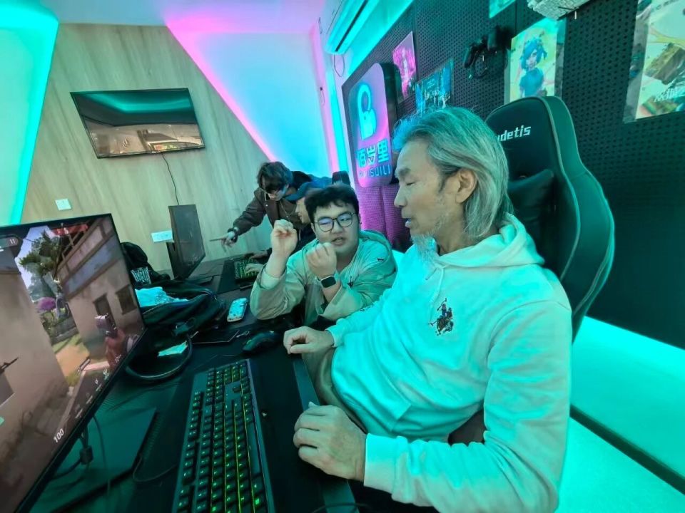 电竞房间里,键盘鼠标的敲击声持续不停,屏幕上的游戏画面激烈闪烁,时不时传来阵阵笑声。更让人意外的是,一群头发花白的老年玩家在屏幕前操作游戏,而一群年轻人在他们身后仔细观战。