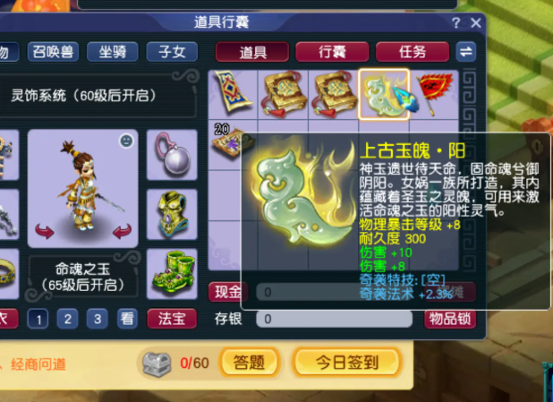 最近,一名少侠在完成魂铸任务后,拿到一枚极品阳玉。这枚宝玉不仅拥有“双伤害一物暴”的炸裂属性,更额外附带了2.3%的奇袭法术几率。对物理系大佬来说,堆高奇袭法术,就意味着在一回合中出手两次的几率大增,足以在战场上带来巨大的面伤压制力。