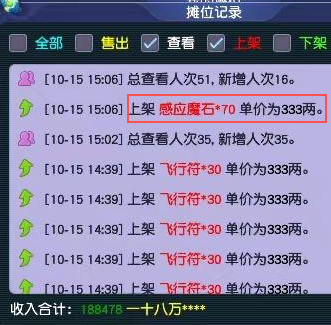 云游道人回归之际,一位少侠凭借“风驰电击”般的手速,成功抢购了30个感应魔石。正当他盘算着转手卖出、小赚一笔之时,意外发生了。在清货过程中,他误将感应魔石标成了飞行符的价格,仅以333两的售价被人瞬间捡漏。