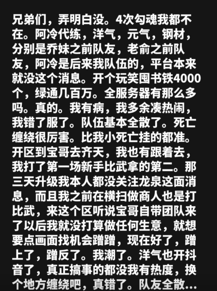 他说他龙拳都没关注,但是互联网是有记忆的,当时不就是说的话吗?这能说你一点不知道,然后代练阿冷开的号,纯纯就是给自己洗白,但是粉丝并不买账!