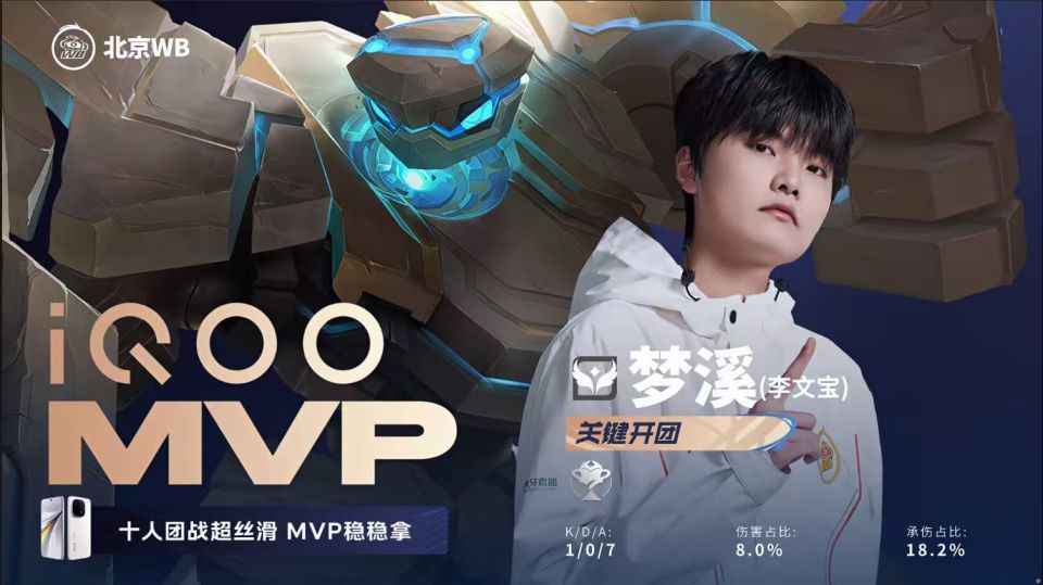 17分50秒,盾山闪背公孙离造成击杀,WB拿到暗影暴君反推中路一塔。20分20秒,镜强切孙尚香完成一换一。21分50秒,杨戬反开秒掉甄姬,孙尚香跟上伤害拿到双杀,WB完成0换4。22分20秒,WB推掉水晶拿到胜利。