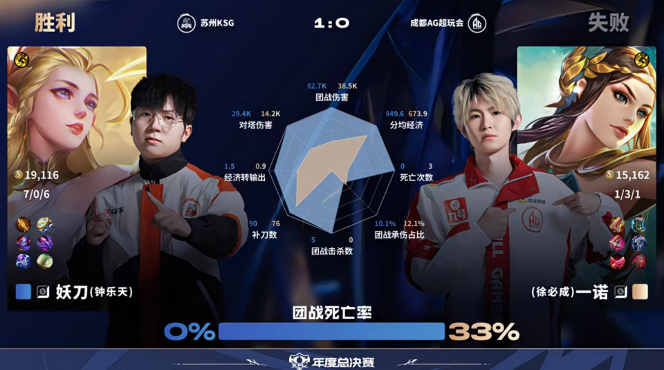 AG100%胜率体系被破,妖刀对位一诺超神数据,KSG鏖战20分钟拿下AG!